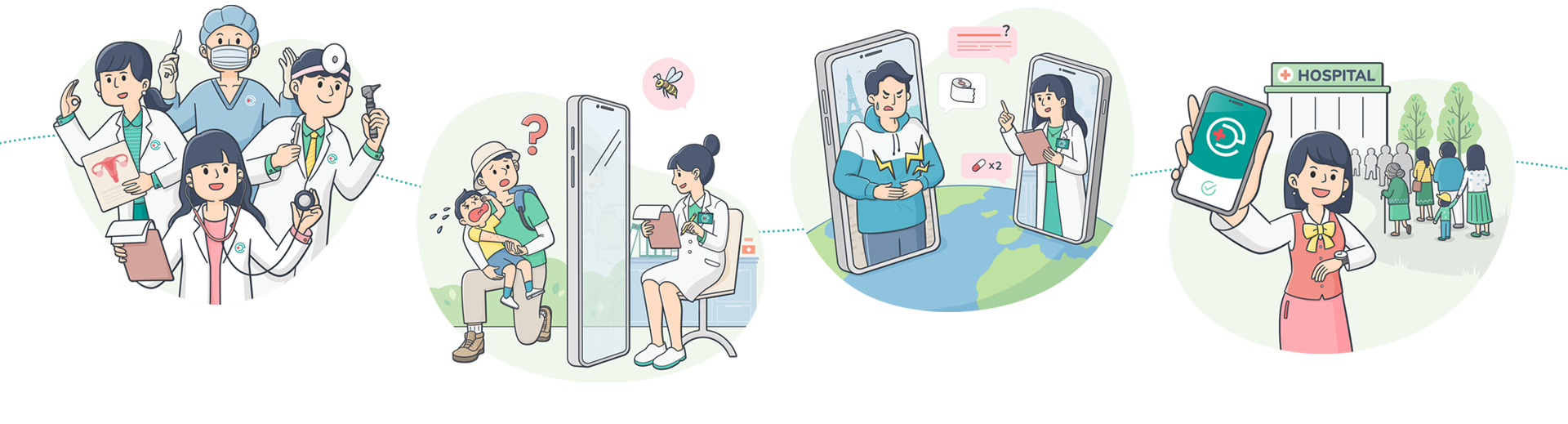 遠距醫療概念對多數人來說既抽象又遙遠,我透過插畫具象化為直觀畫面
